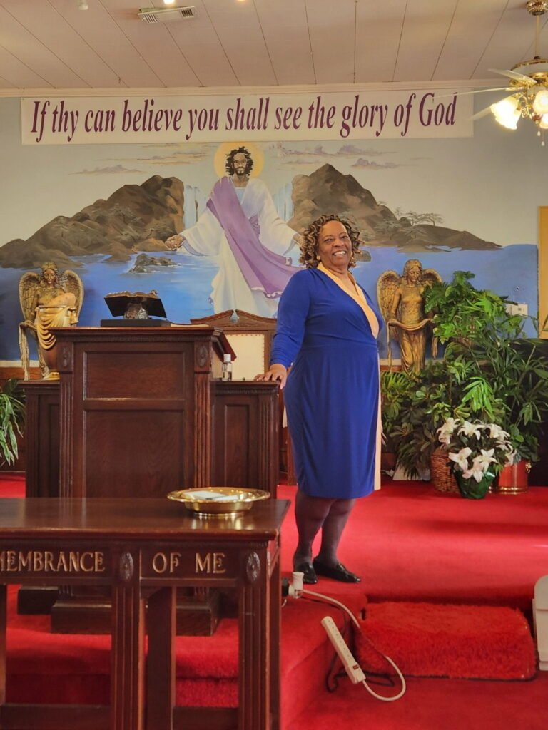 She preaches under the anointing of the Holy Spirit with revelation. God has used her to manesfist miracles and yokes have been destroyed and burdens removed!  To God is the glory!
